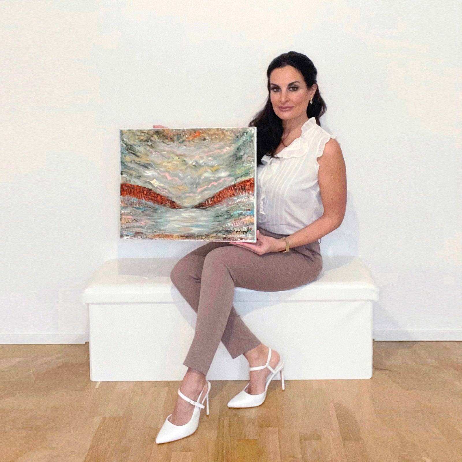 I live in beautiful Nacka near Stockholm with my husband, Fredrik, and our daughter, Nicole, drawing inspiration from the nearby sea. My artwork, with soft pastel tones, gold and copper details, and rich textures, complements modern homes, offices, hotels, and coastal retreats. I have exhibited across Sweden and internationally, including at Art Expo New York and the prestigious Carrousel du Louvre in Paris.