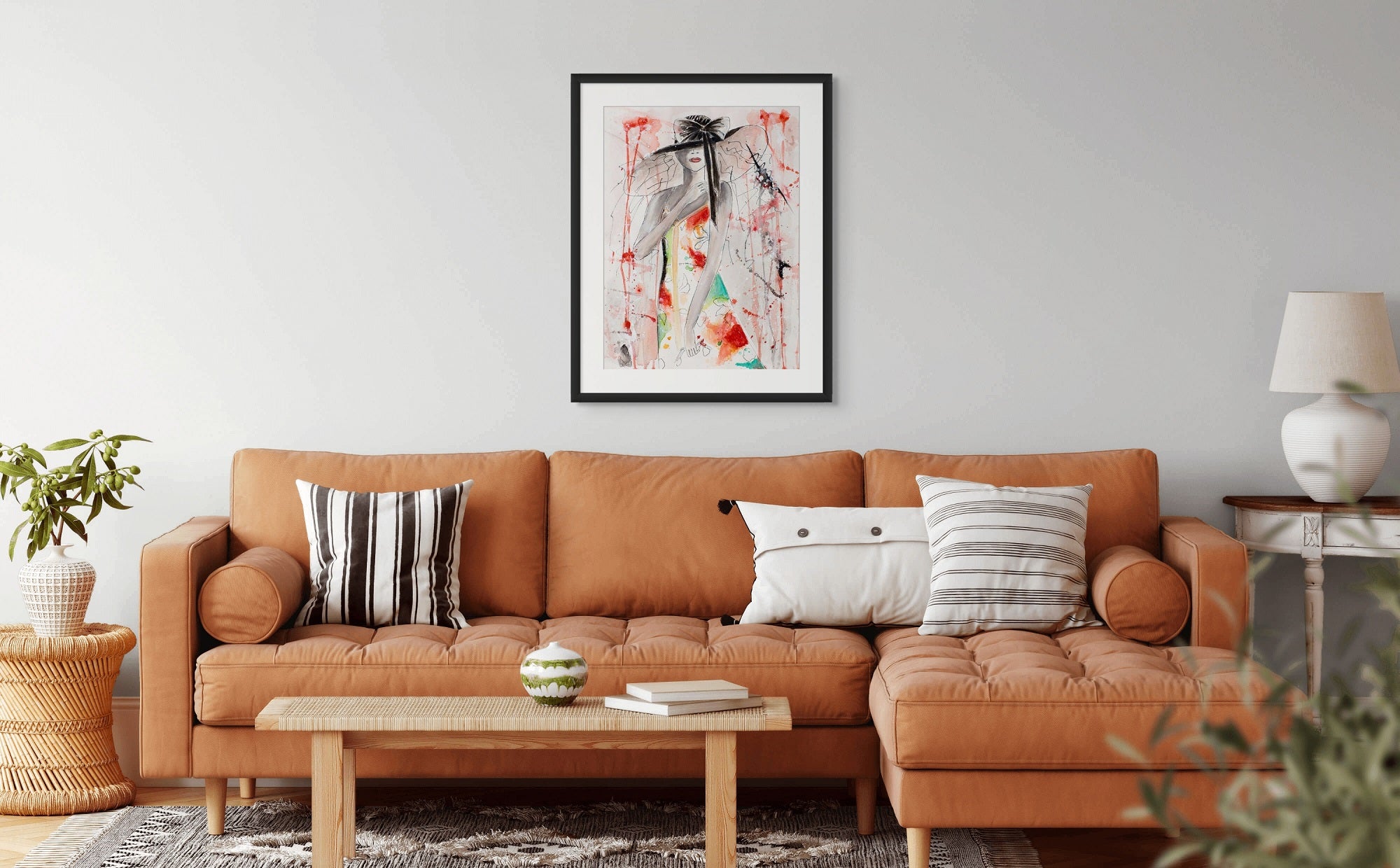 Send a photo of your wall to hello@katemayerart.com and we will photoshop the art into your room and send you the results. This service is free.